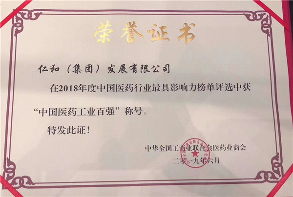 仁和集團榮膺2018年度中國醫藥工業百強 發布時間: 2023年04月23日 11:09:05 閱讀量: 7,779 下一篇:仁和集團榮獲國家藥監局藥品法制宣傳教育基地“先進單位”稱號上一篇:仁和藥業股份有限公司位列榜單中國中藥企業百強(第37位)