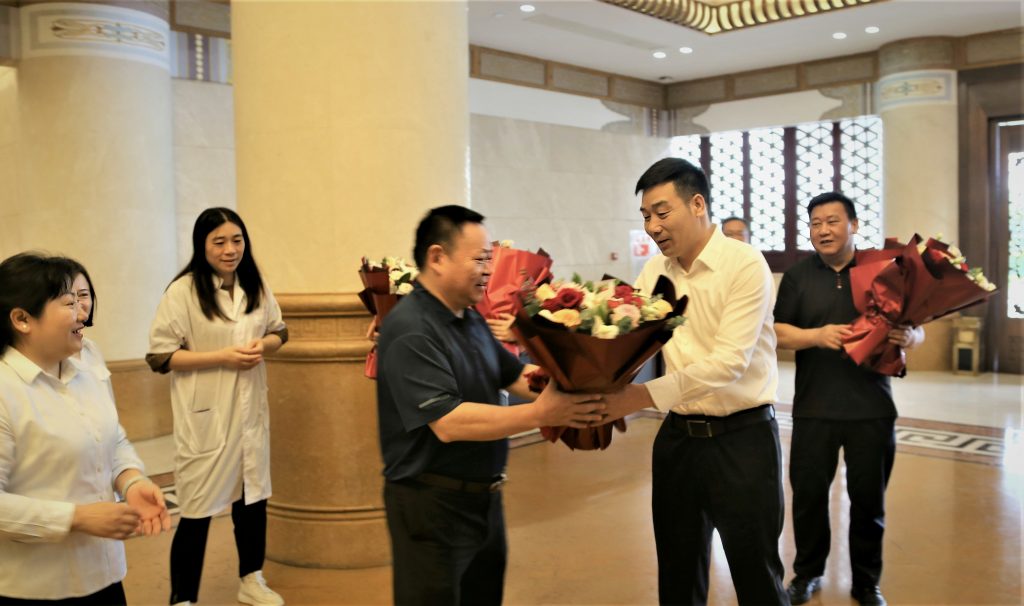 2024年4月28日上午,在“五一”國際勞動節即將來臨之際,樟樹市委副書記、市長羅功成來到仁和集團,走訪慰問全國勞動模范、仁和集團董事長楊文龍,以及劉英、楊柳青、譚紅珍、楊雪春等省市勞動模范代表和部分一線產業工人,向他們送去鮮花和慰問品,并向廣大堅守生產一線的員工送去節日的祝福。樟樹市總工會主席周新根陪同,集團董事彭秋林代表楊文龍董事長接待了羅功成市長一行。