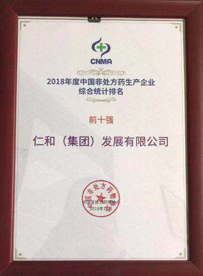 仁和集團榮獲2018年度中國非處方藥產品綜合統計排名前十強 發布時間: 2019年12月18日 15:01:20 閱讀量: 10,838 下一篇:仁和閃亮滴眼液再次斬獲店員推薦率最高獎項上一篇:仁和集團入圍中國民營企業制造業500強榜單第411位